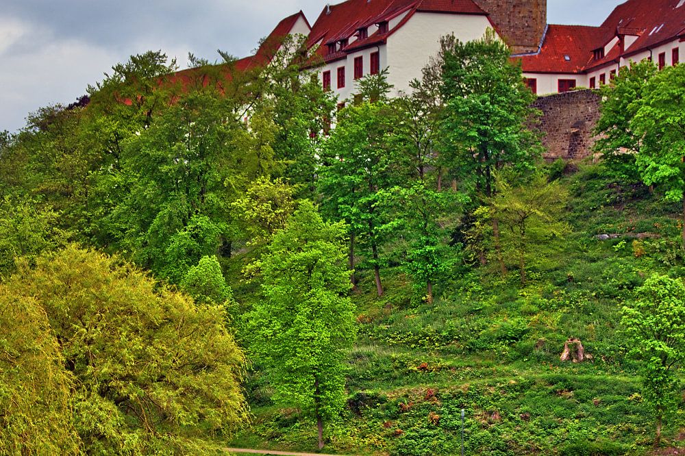 Schloss Iburg in Bad Iburg im Teutoburger Wald mit Charlottensee als Panoramabild