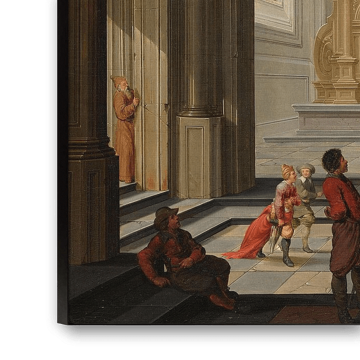Iconoclasme dans une église, Dirck van Delen, 1630 Huile sur panneau, h 50 cm × l 67 cm Un homme sur une échelle a placé un nœud coulant autour du cou de la statue d'un saint ; en dessous, trois hommes sont prêts à l'arracher de son socle. Sur la droite, une statue a été brutalement brisée en deux. En août 1566, des protestants fanatiques ont détruit des retables, des statues et des ustensiles de messe dans de nombreuses églises des Pays-Bas. Une page noire de l'histoire qui n'est pas souvent dépeinte.