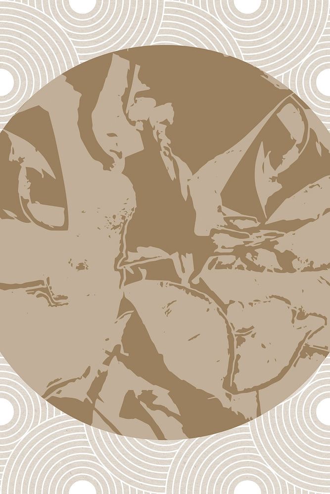 Wikipedia : "Ikigai (生き甲斐, lit. 'une raison d'être') est un concept japonais faisant référence à quelque chose qui donne à une personne un but, une raison de vivre." Art minimaliste abstrait moderne. Palette de couleurs neutres, textures abstraites et formes géométriques simples. Style d'intérieur zen, japonais, minimaliste, scandinave.