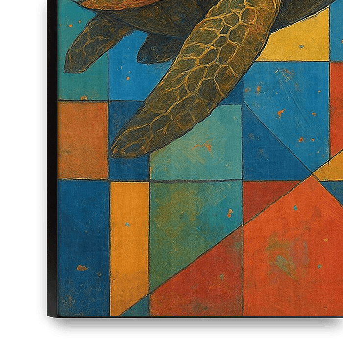 Achetez cette œuvre d'art Popart Illustration d'une tortue de mer. par Galerie Hoppenbrouwers sur toile, aluminium, ArtFrame ou photographie (encadrée), impression d'art en haute qualité et tout format.