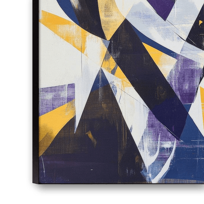 Un jeu fascinant de formes géométriques et de couleurs vives se déploie ici. Le mariage harmonieux du violet et du jaune encadre une tête stylisée qui semble perdue dans de profondes pensées. Cette composition artistique confère à chaque salon une note moderne et inspirante qui stimule la créativité et invite à la contemplation.