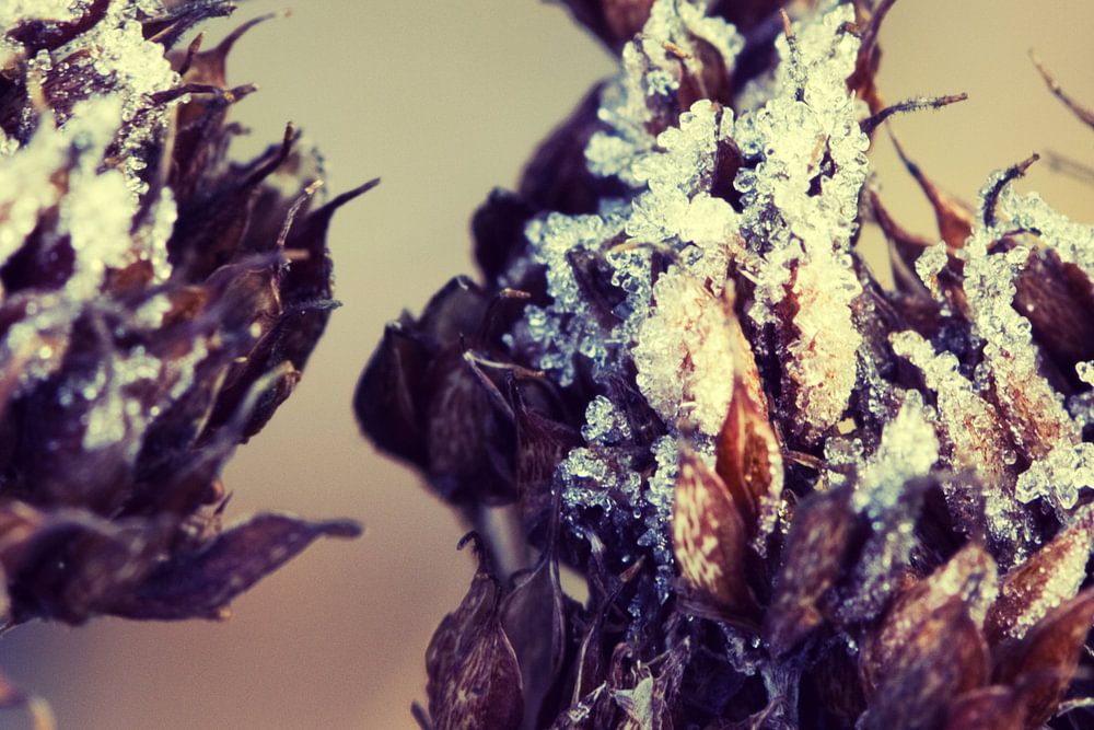 Das Bild zeigt mit Eis bedeckte Pflanzen.