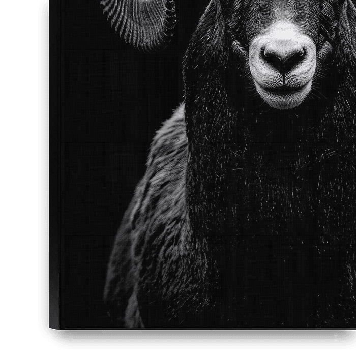 Acheter ce art numérique Impressionnant portrait en noir et blanc d'un bélier majestueux par Art & Soul Creations sur toile, aluminium, ArtFrame ou photographie (encadrée), impression d'art en haute définition et tout type de format.