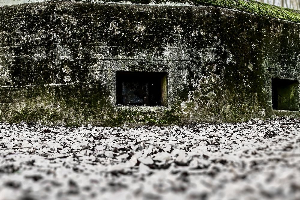 Scène hivernale d'un bunker de la Seconde Guerre mondiale à Grebbeberg, à Rhenen, aux Pays-Bas.
