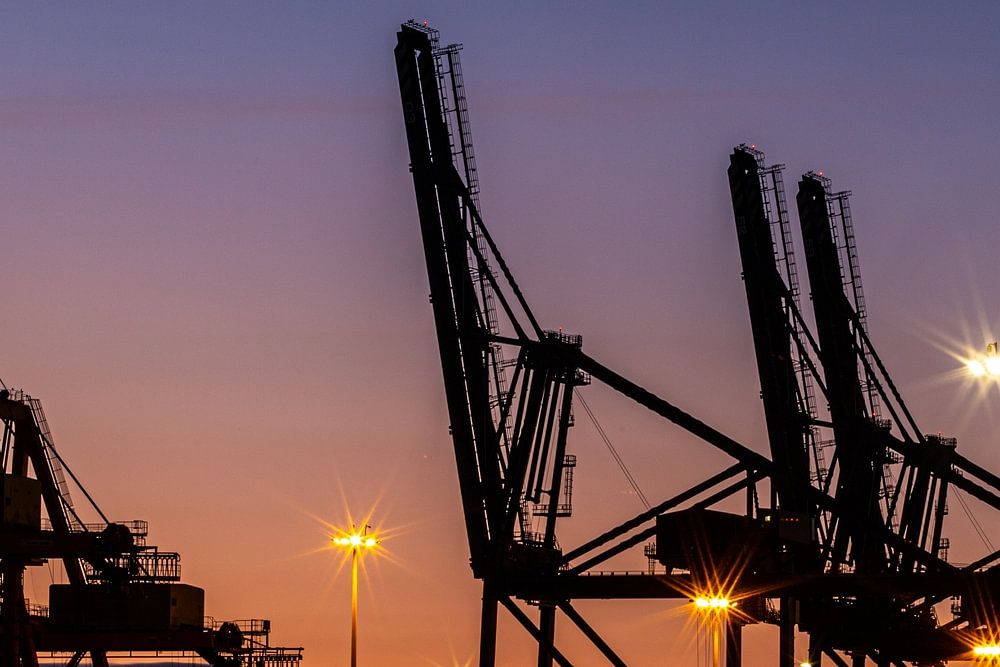 Installation portuaire de Huelva, Espagne, après le coucher du soleil par Winne Köhn