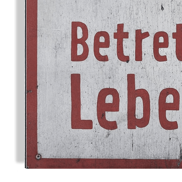 Vieux panneau peint à la main sur un ancien terrain d'entreprise abandonné à Berlin avec l'inscription allemande Betreten verboten Lebensgefahr (entrée interdite - danger de mort).