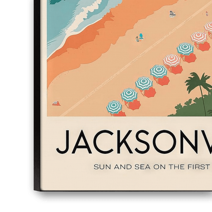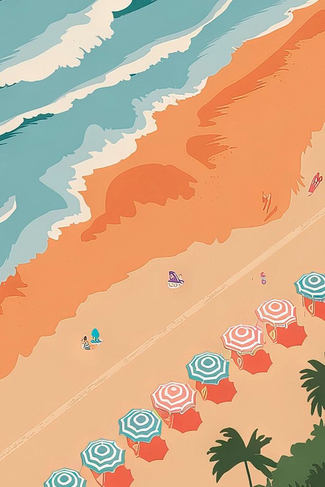 Les douces vagues caressent le sable doré, tandis que les parasols colorés créent une ambiance tropicale. Un air de vacances flotte dans la pièce, idéal pour la cuisine ou le salon. Cette œuvre d'art respire la joie de vivre et invite à rêver de journées ensoleillées à la plage.