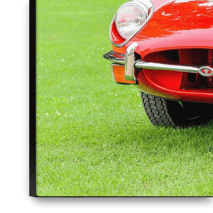 Achetez cette photo Jaguar E-Type Roadster voiture de sport vue de face par Sjoerd van der Wal Photographie sur toile, aluminium, ArtFrame ou photographie (encadrée), impression d'art en haute qualité et tout format.