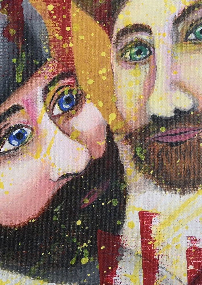 La composition et la robe ont été inspirées par un détail de la Veille de nuit. En outre, les visages/personnages ont été peints de manière intuitive.