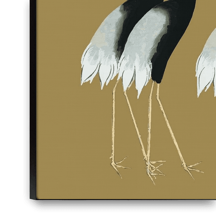 Japon grues dans une représentation apaisante comme peinture sur fond d'or chaud.