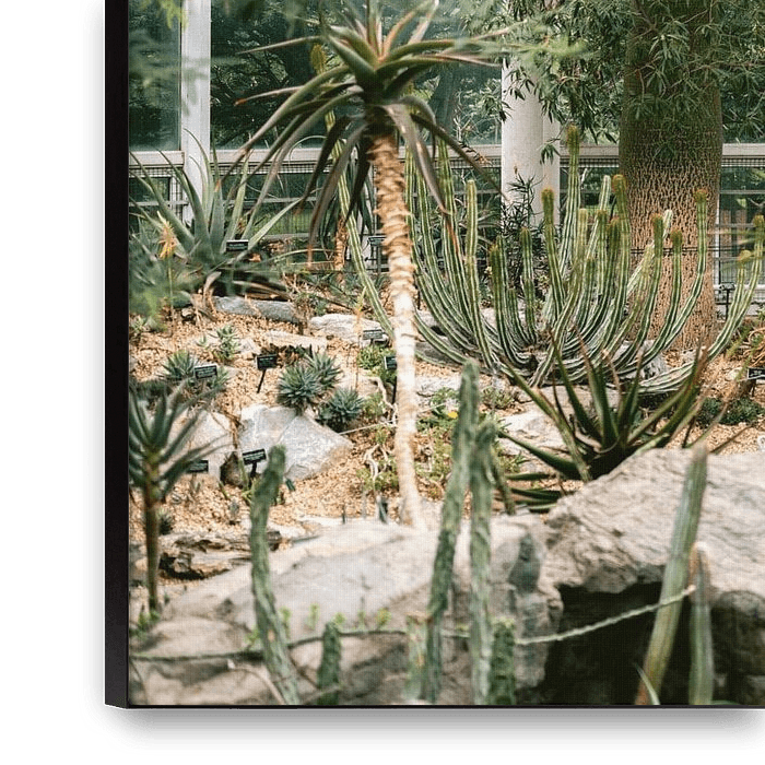 Joli coin avec des cactus et des plantes grasses dans le jardin botanique de Brooklyn / NYC. J'adore me promener dans des serres comme celle-ci - on a l'impression d'être dans un autre monde pendant un moment. Cette image est parfaite pour les amateurs de jardins botaniques et de vibrations.