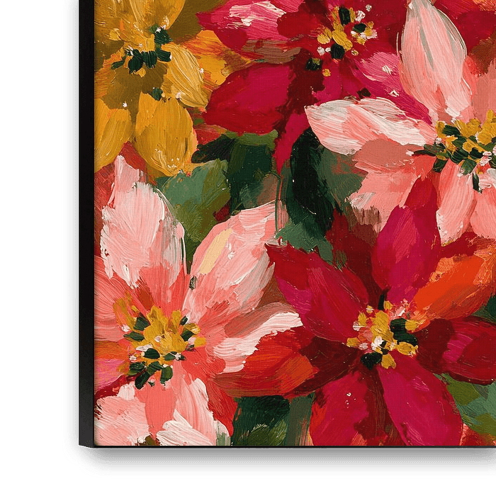 Un tableau vivant rempli de poinsettias rouges, symbole de la saison des fêtes. Chaleureux, coloré et plein de joie de Noël, ce tableau attire tous les regards.