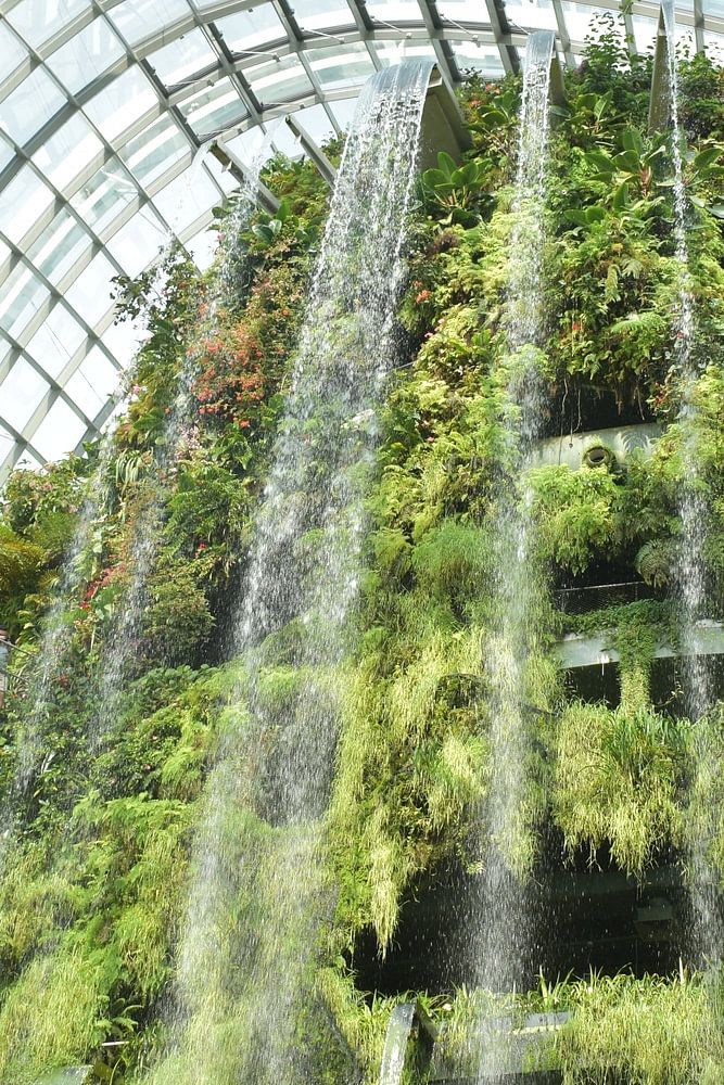 À Gardens by the Bay, à Singapour, les visiteurs sont enchantés par une magnifique pièce d'eau qui s'écoule dans le paysage comme une oasis de sérénité. Cette pièce d'eau complète harmonieusement l'architecture impressionnante et la verdure luxuriante des jardins.