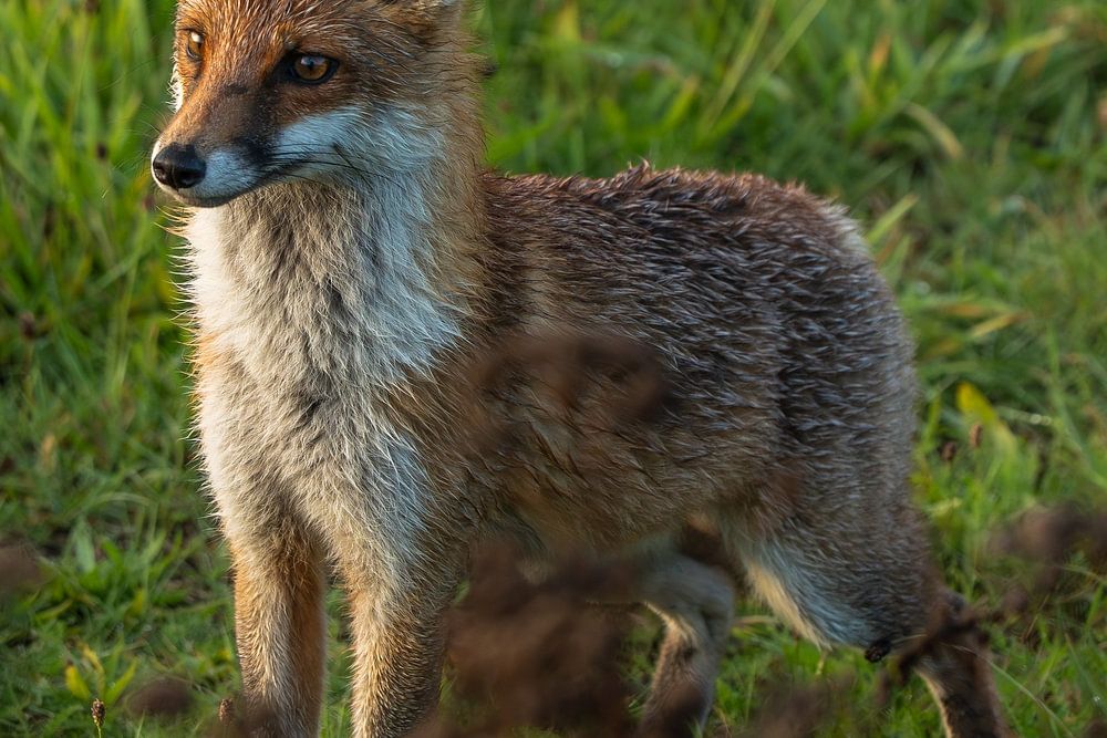 Le renard vigilant. A la recherche de son petit déjeuner, il va et vient prudemment, toujours sur ses gardes. Tout bruit ou mouvement dans son environnement attire immédiatement son attention - et c'est aussi le cas en ce moment. Ce à quoi il réagissait exactement reste un mystère pour moi. Mais j'en ai tiré une image forte : un renard qui se lève et grandit, pleinement concentré et attentif.