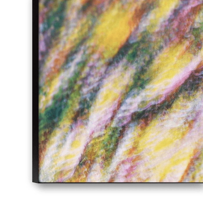 "Jeu de couleurs en mouvement" ; est une macrophotographie, le motif est un détail d'une image abstraite en technique de racle. Le mouvement ciblé de l'appareil photo pendant l'exposition produit un effet particulier.