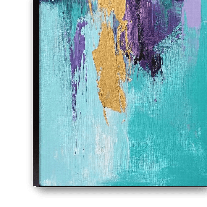 Une interaction harmonieuse entre des tons pourpres vifs et des tons turquoise apaisants se déploie sur cette toile. Des accents dorés ajoutent une touche d'élégance et de chaleur. Cette œuvre d'art fascinante est parfaite pour le salon afin de créer des sujets de conversation et une atmosphère inspirante.