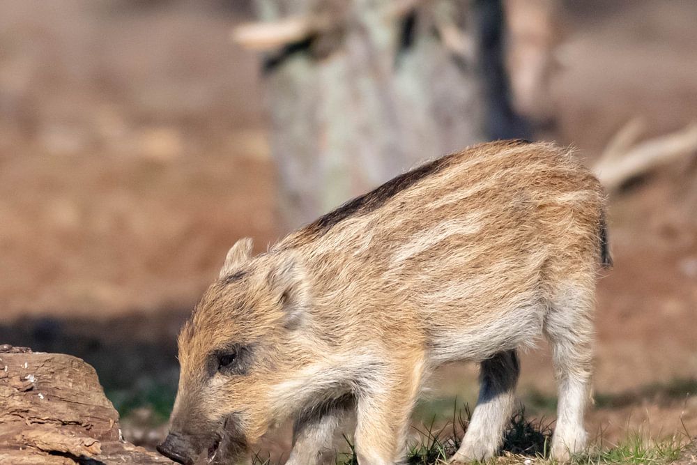 Sous les souches d'arbres, c'est souvent un peu savoureux. Ce jeune sanglier renifle dans le parc national du Hoge Veluwe.