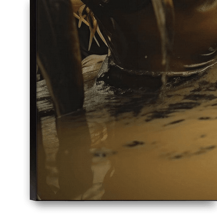 Jouer dans la rivière Suriname. Enfants au Suriname. Remarque : il ne s'agit pas d'une photo, mais d'une œuvre conçue numériquement à l'aide d'AI et de Photoshop. Choisissez vous-même la taille et le matériau et adaptez-le à votre intérieur.
