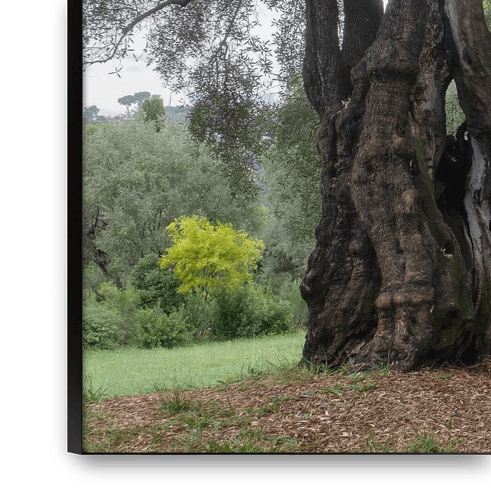 Ces deux oliviers centenaires se trouvent dans le jardin de la maison du peintre impressionniste Renoir. Il a longtemps vécu à Cagnes, dans le sud de la France. L'oliveraie figure dans nombre de ses tableaux et est extrêmement photogénique. Cette œuvre rend bien l'atmosphère rêveuse du jardin.