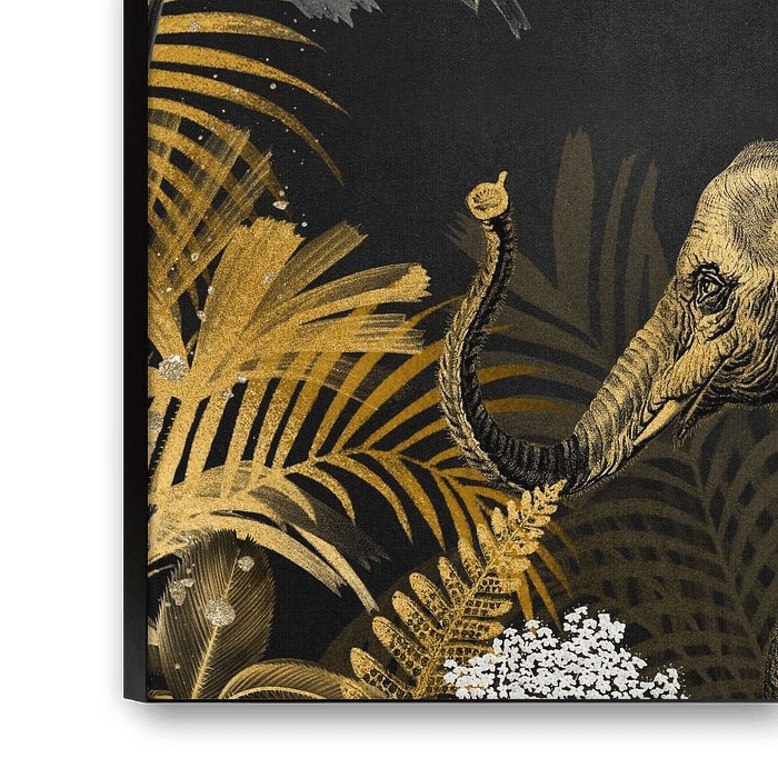 Beaucoup d'or, de noir et de gaieté dans cette œuvre d'art qui ne dépareillerait pas dans une chambre d'hôtel chic.