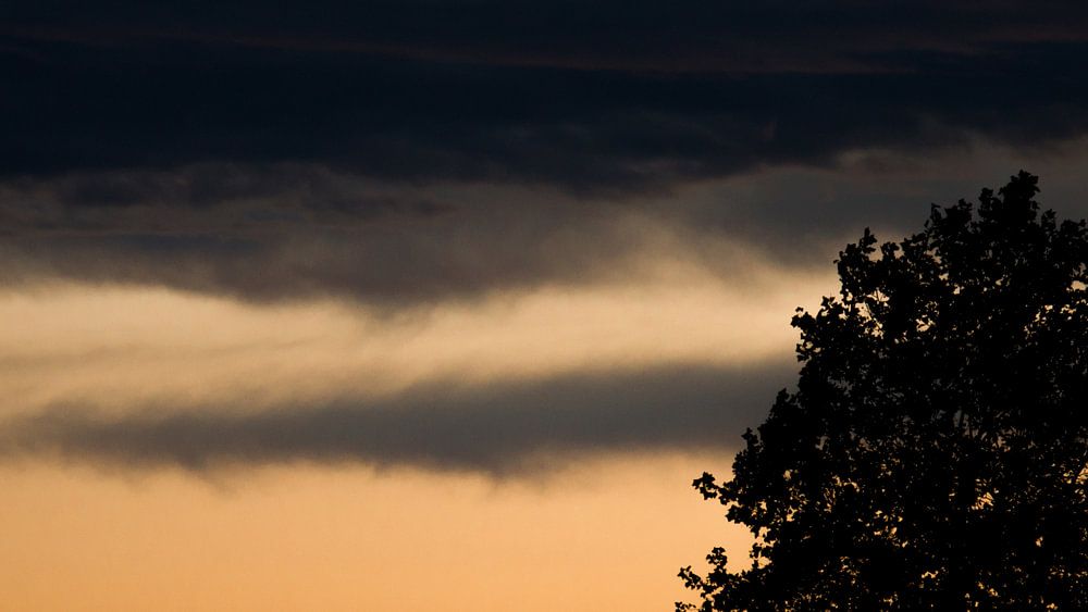 Juste avant qu'un gros orage n'éclate, on pourrait encore prendre cette photo du soleil couchant qui rend encore visibles les contours de cet arbre. Quelques instants plus tard, l'enfer se déchaîne.