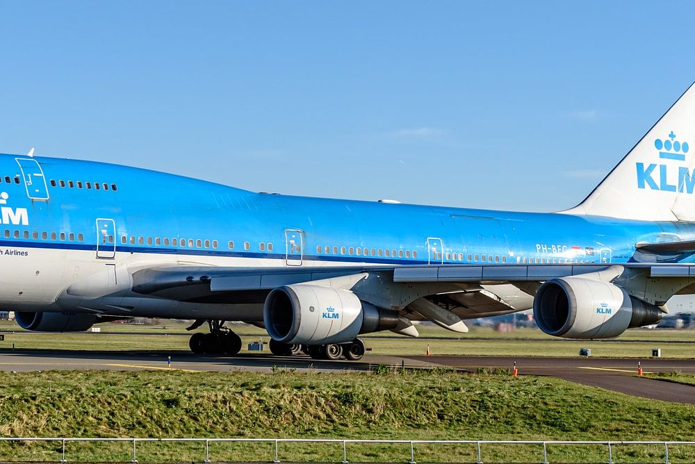 Le Boeing 747-400 de KLM "City of Calgary" (PH-BFC), circule sur la route nationale A5 en direction de Polderbaan où il décollera peu après. La photo a été prise le 7 janvier 2018.
