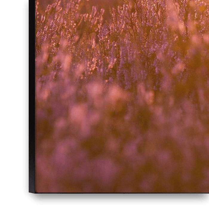 Détail de la bruyère de Kampina en fleur au coucher du soleil, Oisterwijk.