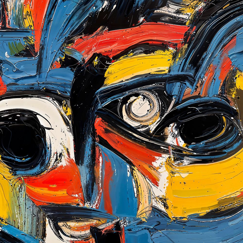 Un hommage à Karel Appel (1921-2006), peintre et sculpteur néerlandais d'art moderne de la seconde moitié du XXe siècle, qui peut être considéré comme l'un des expressionnistes. Il a développé son propre style, indépendamment des autres. Il a percé grâce à son appartenance au groupe Cobra. Lorsqu'il commençait à peindre, il regardait longuement la toile, mais une fois qu'il commençait à peindre, il avait du mal à suivre ses impulsions pour appliquer la peinture. Il donnait l'impression de travailler comme un homme possédé, tout en prenant le temps de mélanger la peinture dans la bonne couleur.