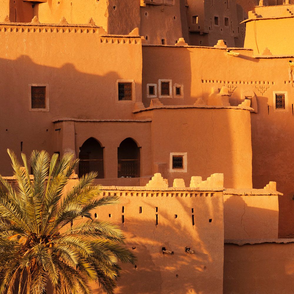 Kasbah Taourirt au coucher du soleil, Ouarzazate, Maroc,
