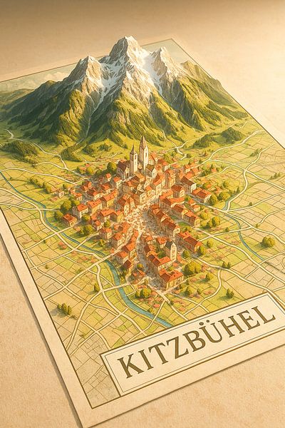 Kitzbühel Ski Resort &amp ; Alps 3D Map - Art mural hivernal tyrolien par Travel Shop