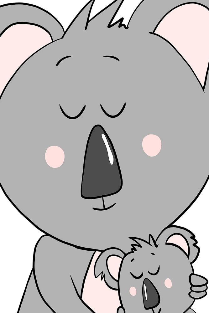 Une illustration unique faite à la main pour ajouter une touche d'atmosphère à la chambre d'enfant. La mère ours Koale et son petit avec le texte "Hugging" ;. Quelque chose que chaque enfant mérite et dont il a besoin. L'impression a un fond blanc et est disponible en différentes tailles et sur différents matériaux.