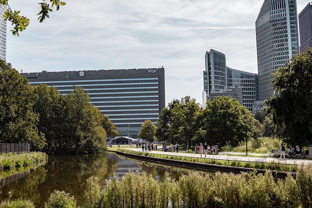 Le chemin piétonnier près de l'eau est toujours très fréquenté. Les gens se rendent à la gare centrale et en reviennent, et les navetteurs profitent de leur pause déjeuner pour se promener dans le Koekamp.