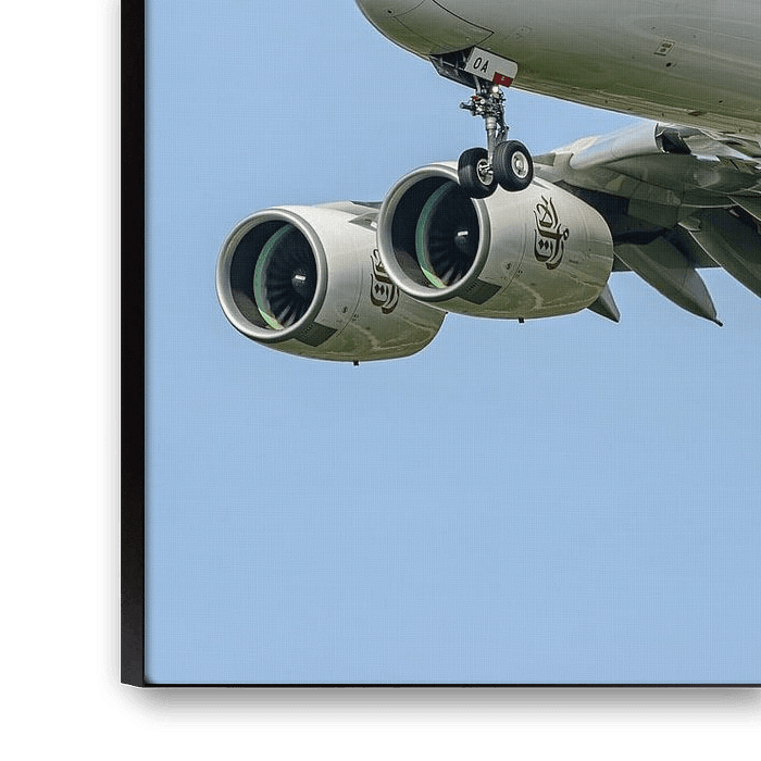 Un Airbus A380 d'Emirates photographié juste avant l'atterrissage sur la piste de Zwanenburg.