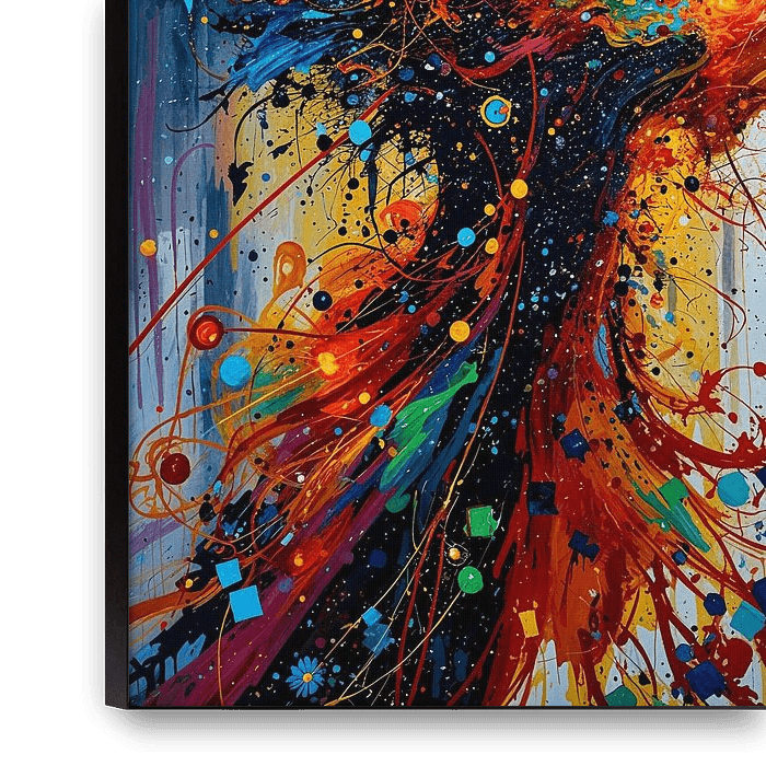 À première vue, il s'agit d'une explosion de couleurs, d'une danse de lumière, d'émotion et de mouvement. Mais ceux qui regardent plus loin le voient : un visage, subtilement tissé dans la palette du chaos. Un être humain, une âme, au milieu d'un ouragan de sentiments.
