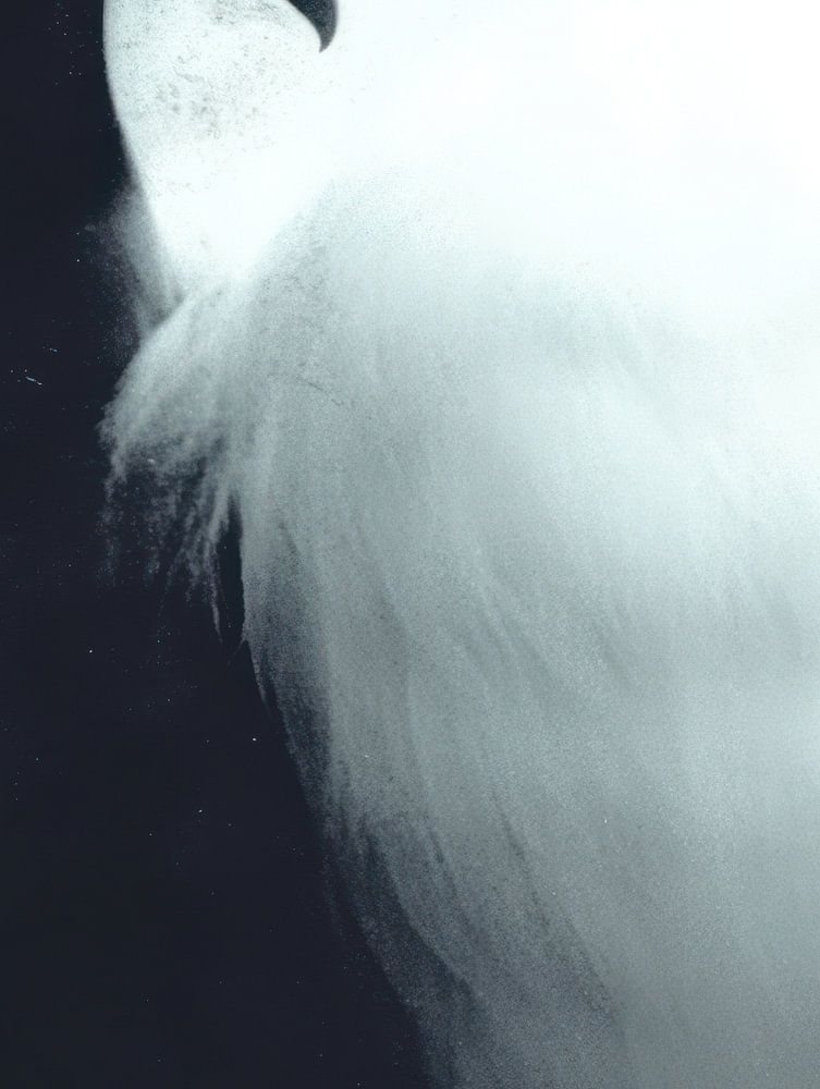Travail photographique stylistique de deux paons blancs dans un monde intérieur. L'œuvre symbolique rayonne d'un amour onirique.