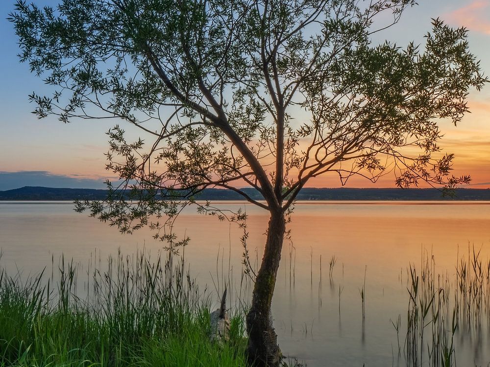 L'arbre est bien caché sur la rive du lac Ammersee. Je l'ai trouvé lors d'une excursion en kayak sur le lac. La photo a été prise le lendemain, lors d'un magnifique coucher de soleil.