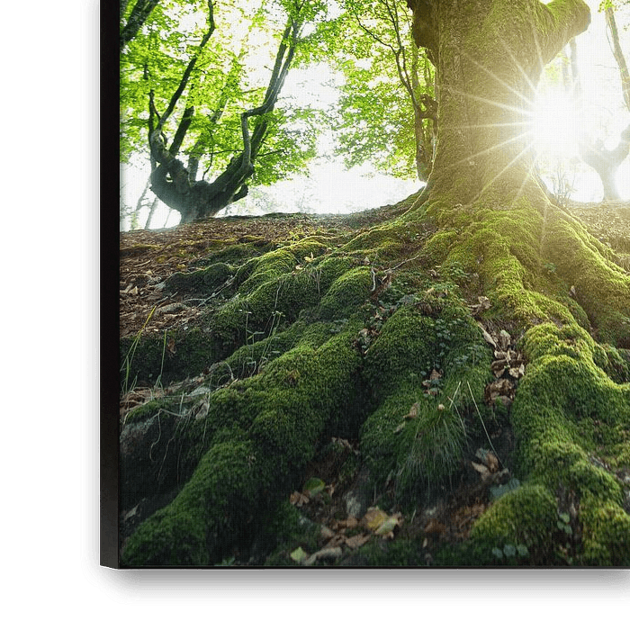 vieux hêtre noueux au tronc mousseux et aux nombreuses racines superficielles visibles dans une hêtraie spéciale.
