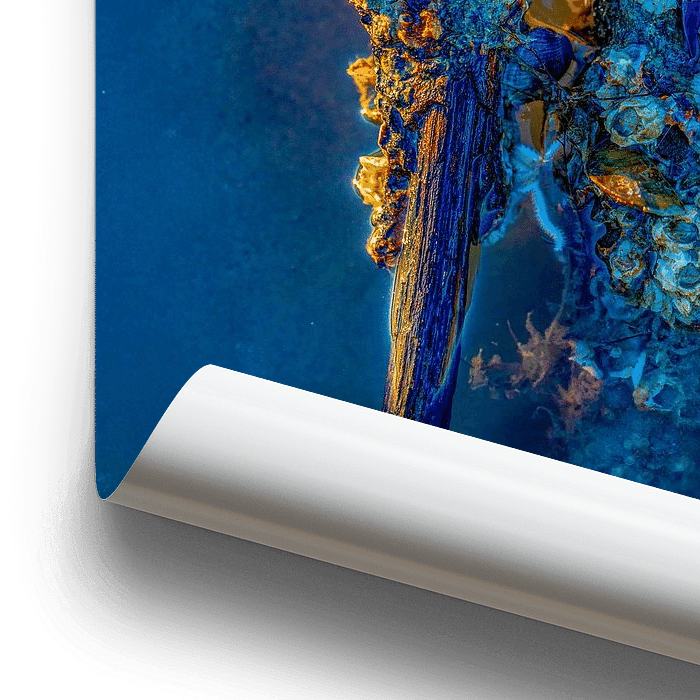 Avec ses nuances profondes de bleu, d'or et de jaune, cette œuvre attire tous les regards - une œuvre d'art qui évoque des histoires et qui ne manquera pas d'engager la conversation avec vos visiteurs.