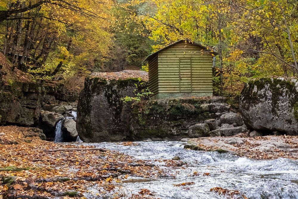 Au début d'une petite rivière dans les montagnes d'Arménie se trouve ce petit hangar. Les feuilles magnifiquement colorées ajoutent au tableau idyllique. C'est un endroit charmant pour se ressourcer. Cette photo respire la paix et la chaleur.