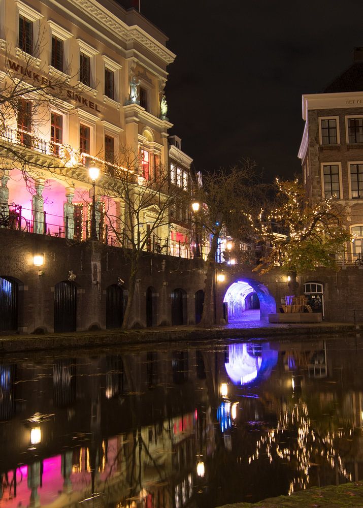 L'automne sur le Oude Gracht à Utrecht, avec le Winkel van Sinkel à gauche.