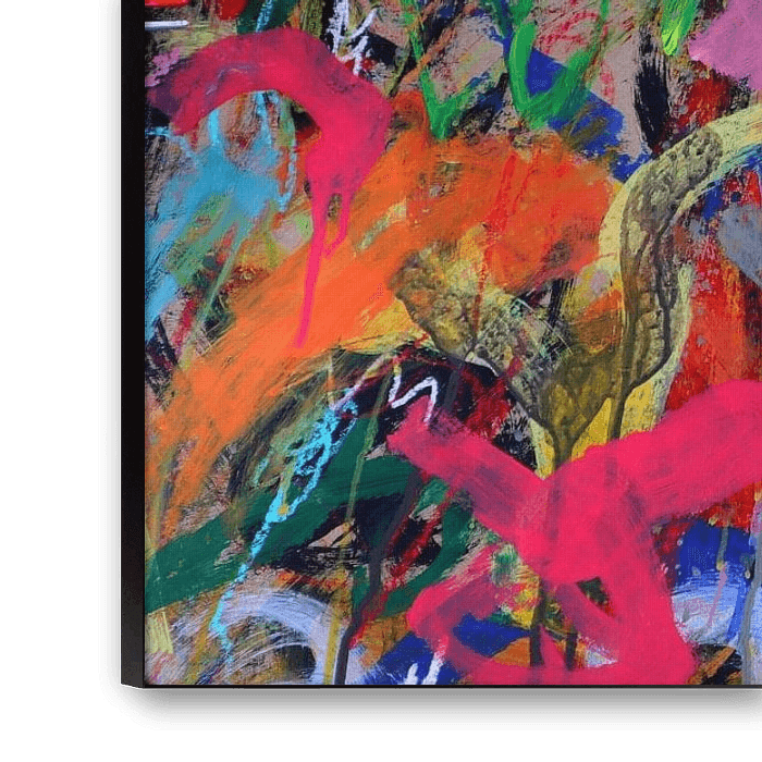 Peinture expressionniste abstraite aux couleurs gaies et joyeuses. Je travaille toujours de la manière la plus spontanée possible, afin d'éliminer la pensée et de laisser libre cours à mon côté spontané, libre et intuitif. La peinture dégage une atmosphère de liberté, de spontanéité, de joie de vivre et de force. Le message : vivez à partir de votre force, de votre essence pure ! Faites ce qui est vraiment important pour vous.