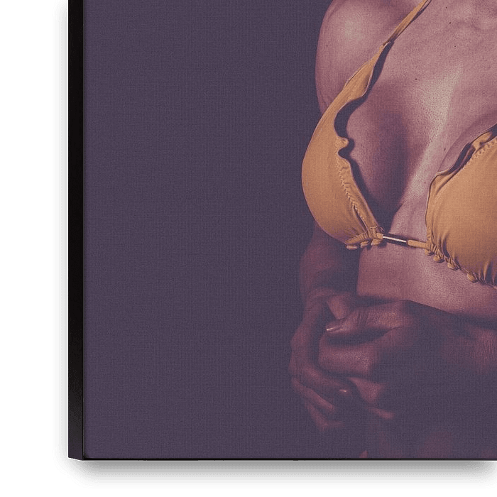 Modèle de fitness féminin, art du bodybuilding, bikini jaune, art du fitness, sports de force, décoration de salle de sport, athlète, art du fitness, art du bodybuilding, sports de force, femme nue (le cas échéant), corps abstrait, sculptural, minimaliste, moderne, force, discipline, motivation, inspiration, or, or noir, Elégance, Application & Intérieur, Home Gym, Mancave, Office Art, Statement Piece, Wall Decoration Fitness, Interior Styling