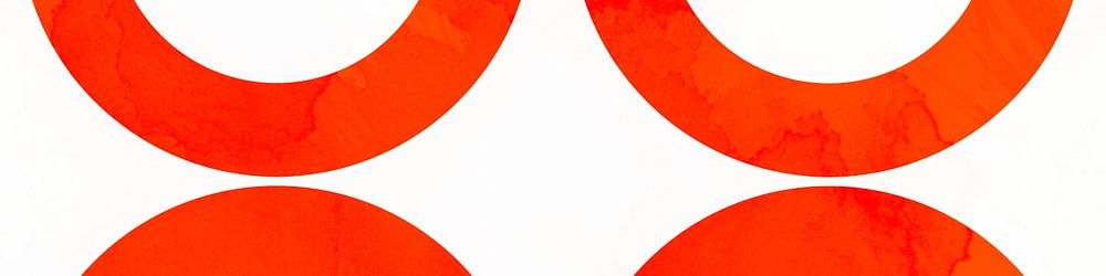 Une peinture abstraite scandinave en équilibre de formes géométriques dans le format panoramique XXL populaire en rouge corail et ivoire toile blanche monochrome.