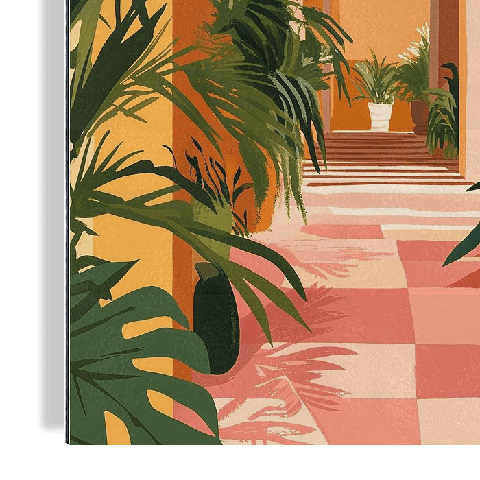 Dans cette œuvre d'art, une rue marocaine colorée prend vie dans un mélange de couleurs et de tons chauds et colorés, qui se marient magnifiquement et évoquent une atmosphère estivale.