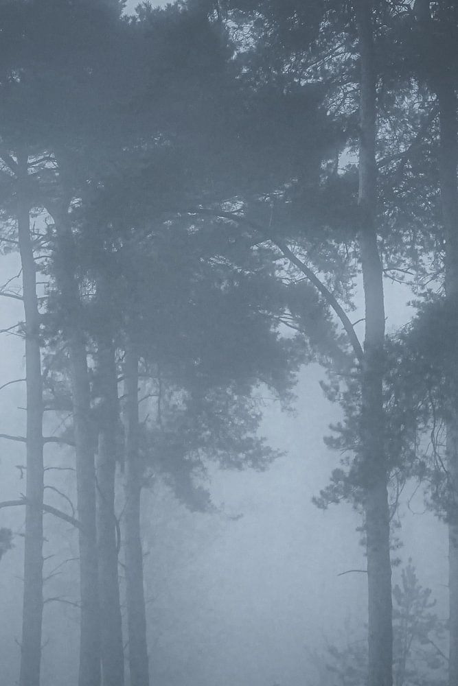 Encore enveloppées d'une brume dense, les forêts de la réserve naturelle de Kampina deviennent complètement bleues juste avant le lever du soleil. Les arbres se détachent de façon impressionnante de la brume bleue dans le paysage encore sombre, créant une atmosphère mystique dans laquelle s'insèrent les sagesses orientales et les pensées bouddhistes zen.