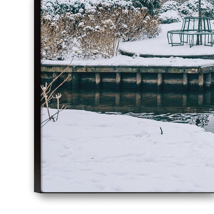 Le village de Giethoorn avec les canaux enneigés lors d'une froide mais belle journée d'hiver calme. Giethoorn est un village d'Overijssel, aux Pays-Bas, célèbre pour ses canaux.