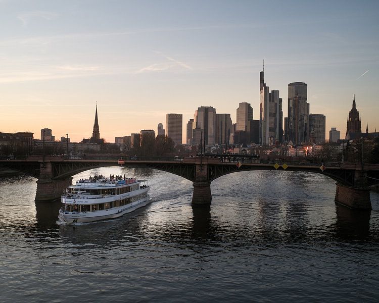 L'horizon de Francfort avec le pont sur le Main et le bateau de fête par Jens Seßler
