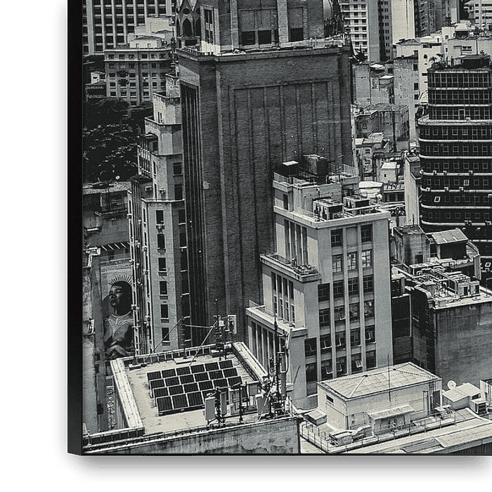 belle vue sur les nombreux hauts bâtiments du centre de Sao Paulo. En noir et blanc, avec un ciel sombre.