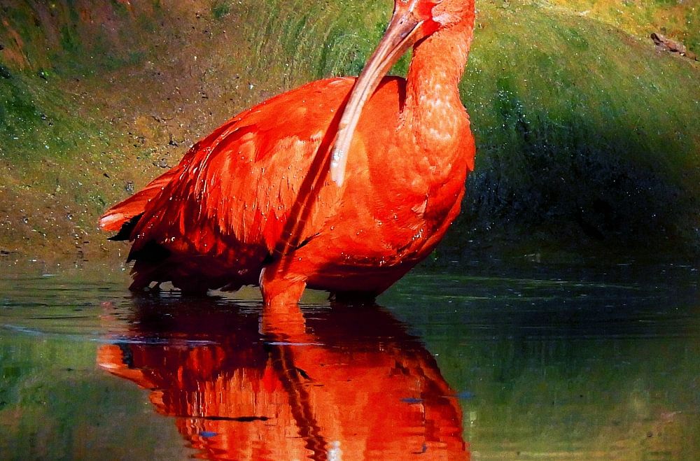 L'ibis rouge a un bec remarquablement long et de belles plumes rouges. On le trouve à l'état sauvage en Amérique du Sud, où il recherche des crustacés (principalement des crevettes et des crabes) dans les mangroves.