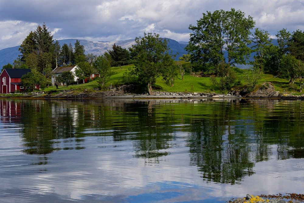 L'île Oma est une petite île située près du village de Strandebarm, dans une partie tranquille du grand Hardangerfjord. Elle est une propriété privée. Il y a des années, j'ai découvert cette île et j'ai eu envie de la photographier. Mon premier pogong s'est déroulé par mauvais temps et j'ai finalement réussi à le photographier avec la belle lumière du soleil de l'après-midi. Pour moi, c'est très caractéristique de la Norvège avec la grange rouge et la maison blanche entourée de montagnes.